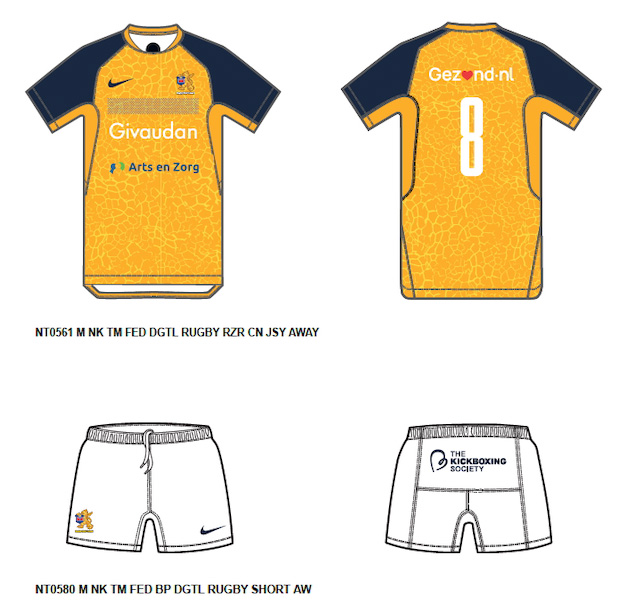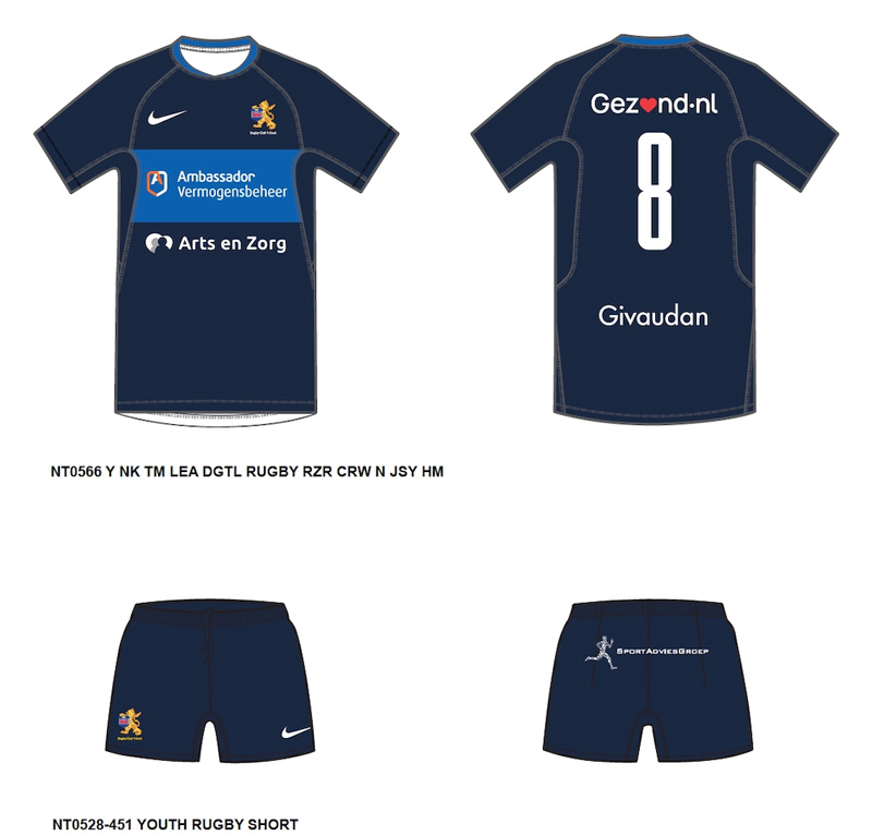 Het tenue wordt aangeschaft bij Rugby Magazijn, aanwezig tijdens de Season Kick-Off begin september. Zij zorgen ook voor het drukken van rugnummers voor wie dat nodig is. Na een week ligt dan je shirt klaar in de winkel. Daarna blijven de tenues op voorraad in de webshop en in de winkel van het Rugbymagazijn.